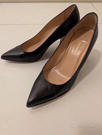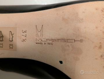 Décolleté Moreschi con tacco ampio e punta stretta, pelle nera made in Italy, usate due volte causa numero sbagliato.