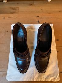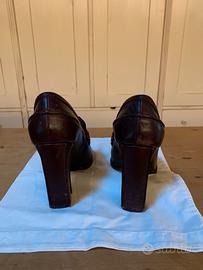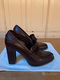 Scarpe con tacco colore bordeaux in pelle stile mocassino di “Veronique Branquinho”. Numero: 38 Ottime condizioni!