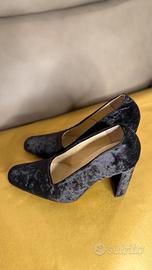 Décolleté in velluto nero con tacco. Interno in pelle. Tacco 90 mm ricoperto. Calzata comoda e regolare. Made in Italy. ( indossate solo una volta )