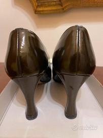 DECOLLETE' IN VERNICE CON DOPPIA FIBBIETTA MISURA 38 GRIGIO ANTRACITE CON TACCO 8 CM.