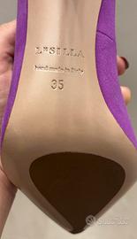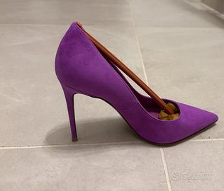 Scarpe Eva in camoscio ciclamino firmate Le Silla; silhouette sensuale con tacco 100 mm.
