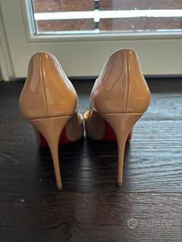 Bellissime décolleté Christian Louboutin Hot Chick color nude n. 38,5 ma calza 38. Come nuove, srgnalo solo un puntono dulla punta della scarpa sinistra ma veramente impercettibile.