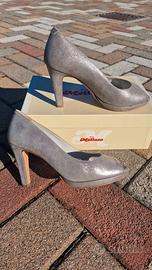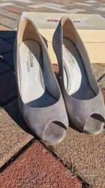Vendo bellissime scarpe décolleté Melluso da donna, colore grigio perla con effetto camoscio leggermente brillante.