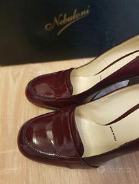 Scarpe produzione italiana Nebuloni vero cuoio tacco 10 n 38 di un bellissimo borgogna lucido.