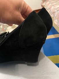 Scarpe donna in pelle scamosciata nera Mauro Fedeli, tacco a zeppa 6 cm., decoro frontale, N.39.