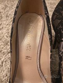 Décolleté nere e beige, color cappuccino, eleganti a punta aperta con tacco alto (circa 10 cm) e dettaglio in pizzo nero di Primadonna. L’interno è in vera pelle.