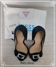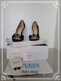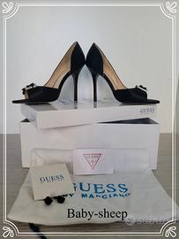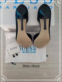 Décolleté eleganti "Guess by Marciano" colore nero, numero 36. Scarpe nuove, mai indossate, solo provate in casa. Modello elegante con fibbia gioiello decorata con strass sul davanti e tacco alto sottile di circa 10 cm. Vendute con scatola originale, sacchetto protettivo Guess e tacchi di ricambio(visibili in foto) Perfette per cerimonie, eventi o serate eleganti. Condizioni: nuovo con scatola. Disponibile per qualsiasi domanda o altre foto.