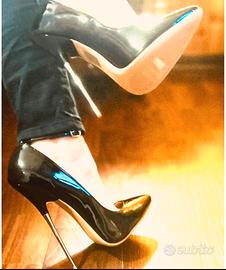 Bellissime décolleté in vernice nere tacco altissimo 16 cm