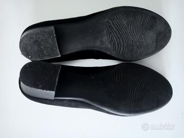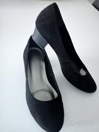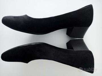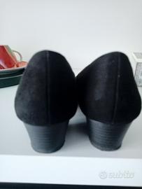 Décolleté simil camoscio nere n.38 ,tacco cm.4 ,comode con suola interna dorata di cuscinetti sul tallone.Indissate un paio di volte .Made in Italy Marco Tozzi