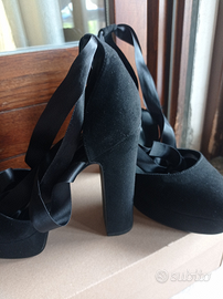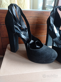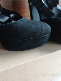 Décolleté nere Even&Odd, scamosciate, con plateau e tacco largo.
