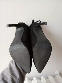 Décolleté nere scamosciate a punta con nastro opzionale alla caviglia in modo da essere indossate in maniera diversa.