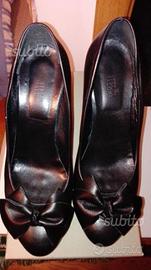 Scarpe décolleté in pelle nera con delizioso fiocco in punta. Numero 40, tacco 11. Comodissime.praticamente mai indossate.