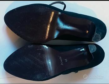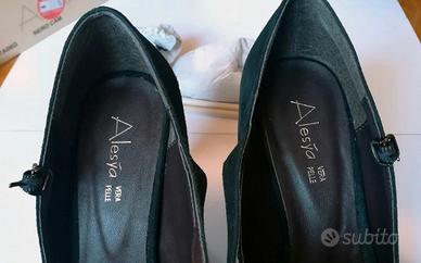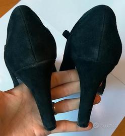 Vendo eleganti décolleté nere Alesya con finitura effetto scamosciato. Numero: 41 Tacco: 10 cm (vedere foto) Materiale: vera pelle Colore: nero Indossate una sola volta, come si vede dalla suola praticamente nuova. Scarpe molto eleganti e comode, ideali per occasioni formali, lavoro o serate. Scatola originale inclusa (rovinata) Posso inviare altre foto su richiesta Prezzo di listino: 59,90 € Vendo a prezzo conveniente per liberare spazio, i tacchi non fanno per me ^_^° ---------------------- decollete tacchi alti alte tacco alto elegante nere scamosciate scamosciata ufficio cerimonia donna