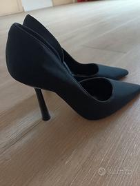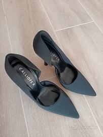 Décolleté nere in tessuto, tacco alto, marca Calliope, nr 36. Usate una sola volta.