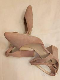 Décolleté NERO GIARDINI colore Nude n.36 in pelle scamosciata, suola e tacco in gomma antiscivolo in Ottimo stato, cinturino incrociato sul dorso piede, tacco a blocco cm.5. Usate per cerimonia due volte la scorsa primavera, senza scatola sempre ben conservate, igienizzate. Acquistate in boutique (costo oltre € 100). Vendo € 18. un