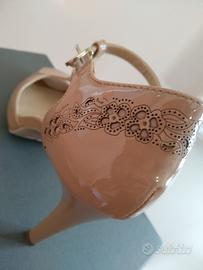 bellissime décolleté Nero Giardini in pelle verniciata color nude, con trafori floreali sul tallone. tacco di circa 7 cm. come nuove, usate una volta. taglia 36.