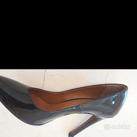 Décolleté nuovissime. Usate una sola volta ( forse 1/2 ora) e riposte per sempre nella loro scatola. Si sfilano dal piede per acquisto numero sbagliato. Hanno un tacco 90 e sono anche stati sostituiti i sopratacchi di plastica con quelli di gomma ( antirumore e antiscivolo). Naturalmente non presentano difetti