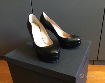 Stupende decollete’ in pelle nera, tacco 12 cm. Plateau cm 3 usate 2 volte,in perfette condizioni,molto comode,vestono n 38