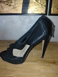 Scarpe decollete PINKO nere alte ma comodissime in quanto la fascia nera tiene saldamente la caviglia