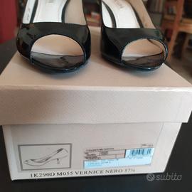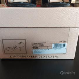 Bellissime, decolletè in vernice nera, vendo solo perchè non le uso più in quanto devo portare scarpe comode. Piccola ammaccatura della vernice sul tacchetto destro per via dei sanpietrini di Roma!! Scatola originale completa di Certificato e 2 tacchi di ricambio.