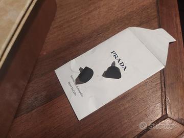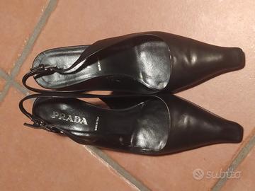Decollete', sabot, prada aperte pelle, nere. Con cinturino regolabile. Sottotacchi di ricambio.