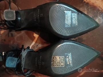 Scarpe nere da donna in raso, tacco, lacci, numero 39, nuove. Vendo per errato numero. Marca Primadonna.