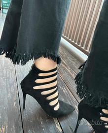Linea slanciata con punta affusolata e tacco sottile da circa 8 cm, ideali sia per outfit serali che per look più rock-chic.