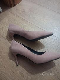 Décolleté rosa antico numero trentotto scamosciato, tacco aspillo. Sette centimetri