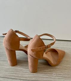 Décolleté rosa cipria in velluto con laccio alla caviglia
