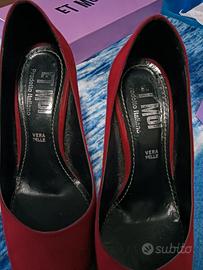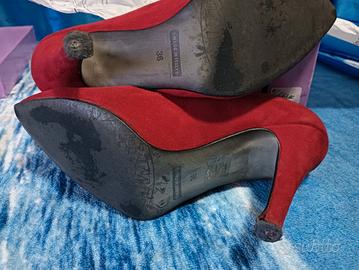 Dècolletè Velvet Rosso n°36 i tacchi presentano segni di usura, vanno sostituiti. Nell' ultima foto si vede una piccola imperfezione che è nella scarpa sinistra.