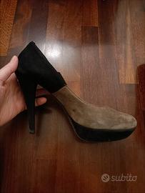 Scarpe décolleté bicolore. Tacco 10 cm con plateau. Bicolore, nere e tortora. Ottime condizioni, indossate poco. Comode. Vestono giusto.