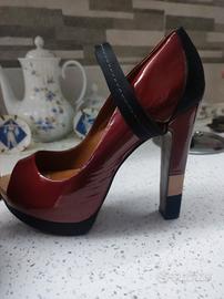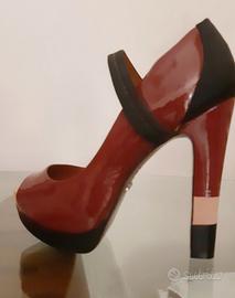 Vendo eleganti décolleté marca Schutz in vera pelle. Colore rosso bordeaux con dettagli neri e plateau. Tacco circa 13 cm. Scarpe di alta qualità, pagate circa 200 €. Usate solo 2 volte, condizioni ottime. taglia 40