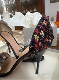 Décolleté spuntate in tessuto fiorato con applicazioni dulla fascia davanti come nuovw solo il sipratacco un po rovibato usate un paio di volte