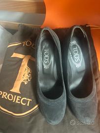 Vendo, causa inutilizzo, decolletes di camoscio Tod’s, colore grigio topo, numero 37 e mezzo, ottima vestibilita’ (plateu di 1 cm). Prezzo di acquisto 220 euro.