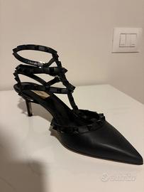Decolletè Valentino Garavani Rockstud in pelle con cinturini e borchie nere tono su tono Nr.40 Prive di scatola, come nuove, usate una volta.