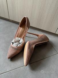 Colore rosa cipria con punti luce , tacco a spillo