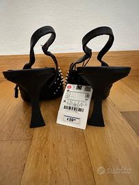 Décolleté Zara nere con applicazione di borchie, numero 39, nuove con cartellino mai usate, tacco 10 cm