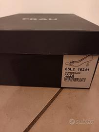 Scarpa elegante in pelle con tacco e dettaglio color oro.