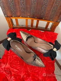 VENDO decollèttè Pittarello made in Italy oro glitter con fiocco nero brillantinato in tessuto sul dietro. Vendo con scatola. Prezzo trattabile.