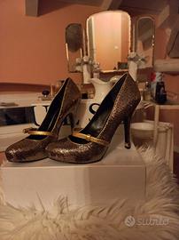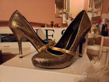 DECOLLETTE'/PUMP DA DONNA DEL MARCHIO GUESS CON FINITUTURA GLITTERATA COLOR ORO (GOLD)