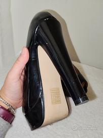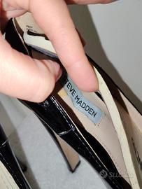 Eleganti décolleté da donna verniciate nere di Steve Madden, con tacco alto e plateau.