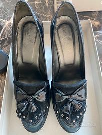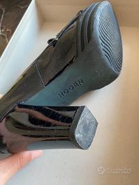 Scarpa originale con scatola originale Decolte hogan nero lucido con nappina e inserto velluto, tacco largo altezza 9cm numero 39