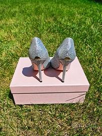 Vendo décolleté argento Liu Jo a punta. Indossate solamente due volte e in ottime condizioni. Complete di scatola originale e bustina porta scarpe in tela.