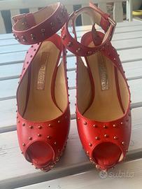 Decoltè in vera pelle rosse con borchie marca Nando Muzi misura 35 Nuove . Condizioni perfette