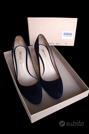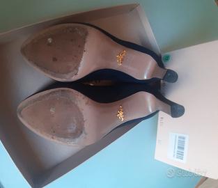 Vendo scarpe Prada blu , tg 36.5, tacco 10 cm, plateau 2 cm, usate 7-8 volte, elegantissime. Le scarpe sono fornite di scatola.