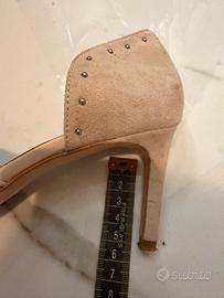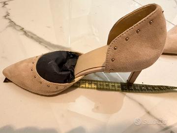 Scarpa decoltè taglia 35 (tacco 5 cm) marca Zign, in vera pelle scamosciata beige chiaro con borchie, made in Spain, acquistate in boutique a Rapallo