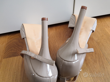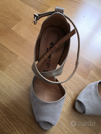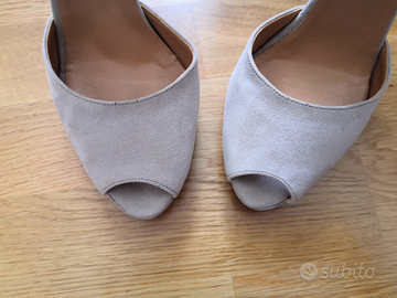 Numero: 38. Colore: beige, nude. Davanti scamosciato. Dietro vernice. Laccio intrecciato. Punta semi aperta. Tacco perfetto.