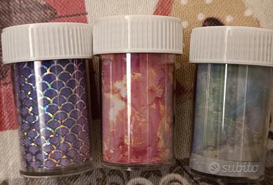 Vendo fogli di trasferimento, decalcomanie transfer e tip guides per french nail... il tutto per la decorazione delle unghie. Sono nuovi e mai usati.