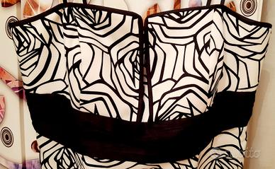 Delizioso abito, scollato, con un corpetto rigido, delizioso, difficile da evidenziare in foto.Bella pure la fascia centrale, plissettata, che dona un tocco in più a tutto l'insieme, rendendolo raffinato e affascinante.Indossato con un coprispalle, rappresenta un indumento unico nel suo genere, da indossare in occasioni davvero speciali.