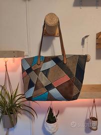 Borsa desigual capiente compresa di bag più piccola interna. Segni di usura solamente sui manici come da foto.